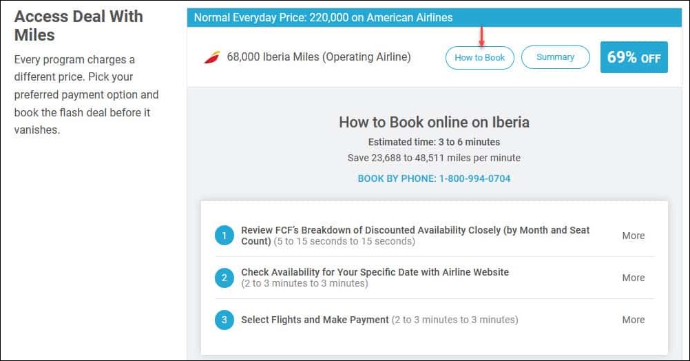As you’d expect, our Deal Summary is an overview of the deal in a nutshell. Click Show More to go deeper, where you’ll find information about using miles and points.